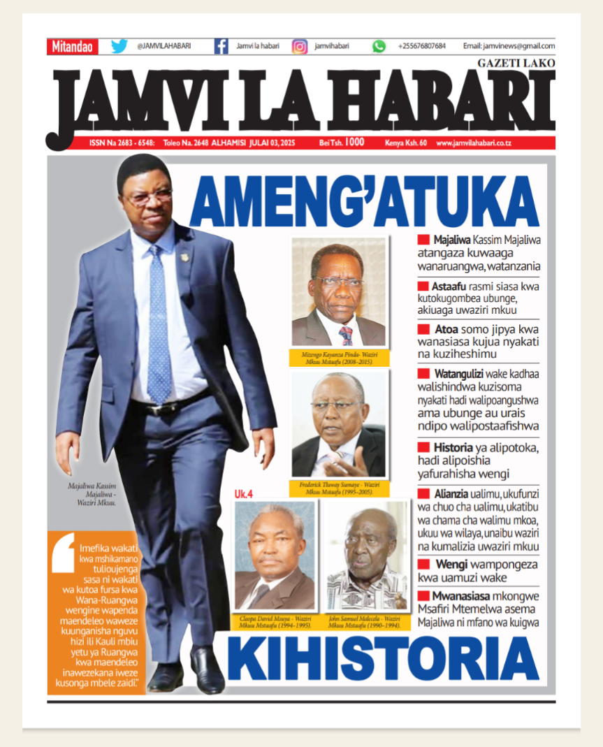 Waziri Mkuu Kassim Majaliwa Majaliwa, ambaye pia ni Mbunge anayemaliza muda wake wa Jimbo la Ruangwa, ametangaza kutogombea tena nafasi ya ubunge kupitia Chama Cha Mapinduzi (CCM) hatua iliyoshangaza wengi, hasa baada ya kauli zake za awali kuashiria nia ya kuwania tena nafasi hiyo.