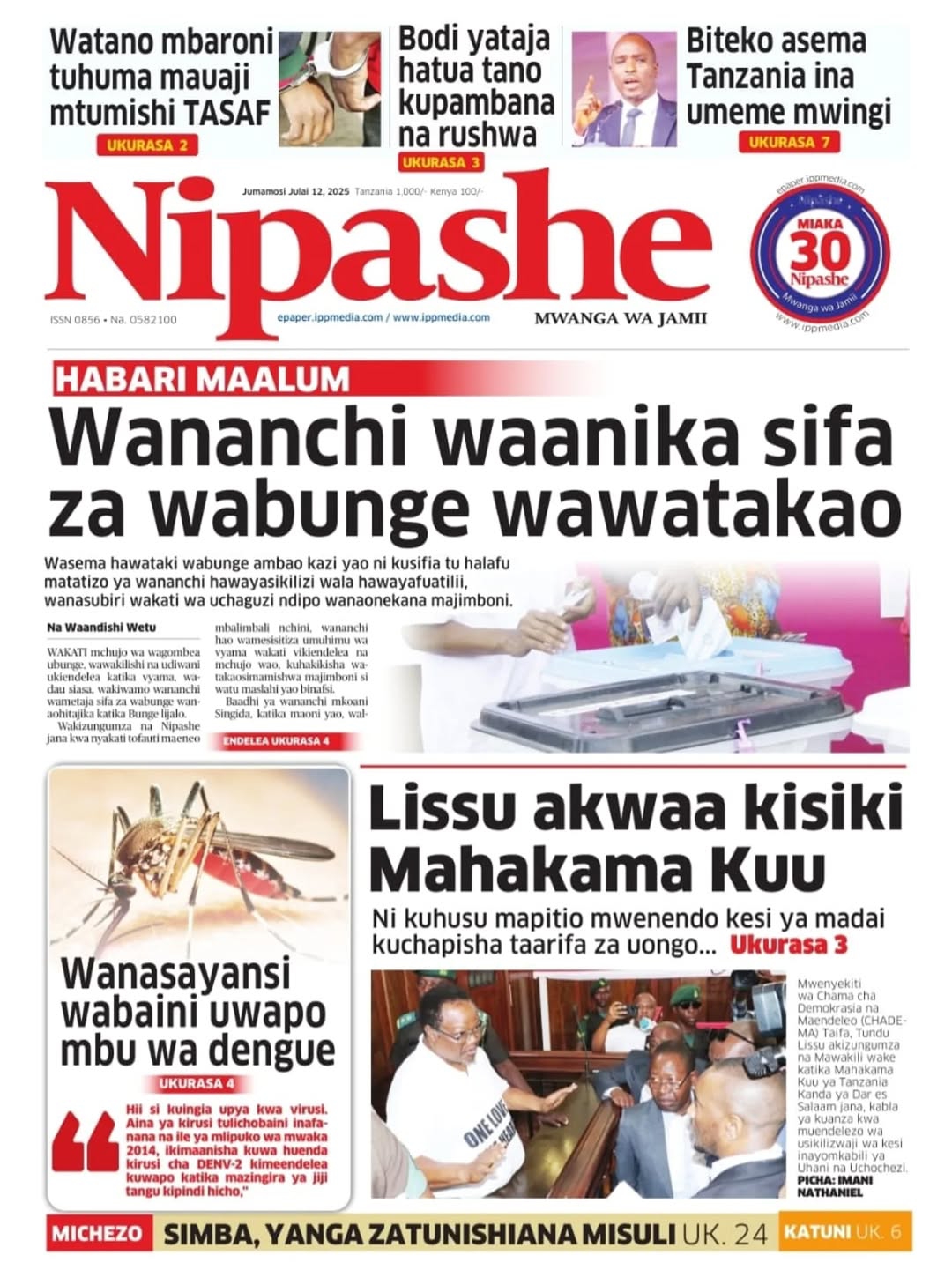 MAGAZETI ya Leo Jumamosi 12 July 2025