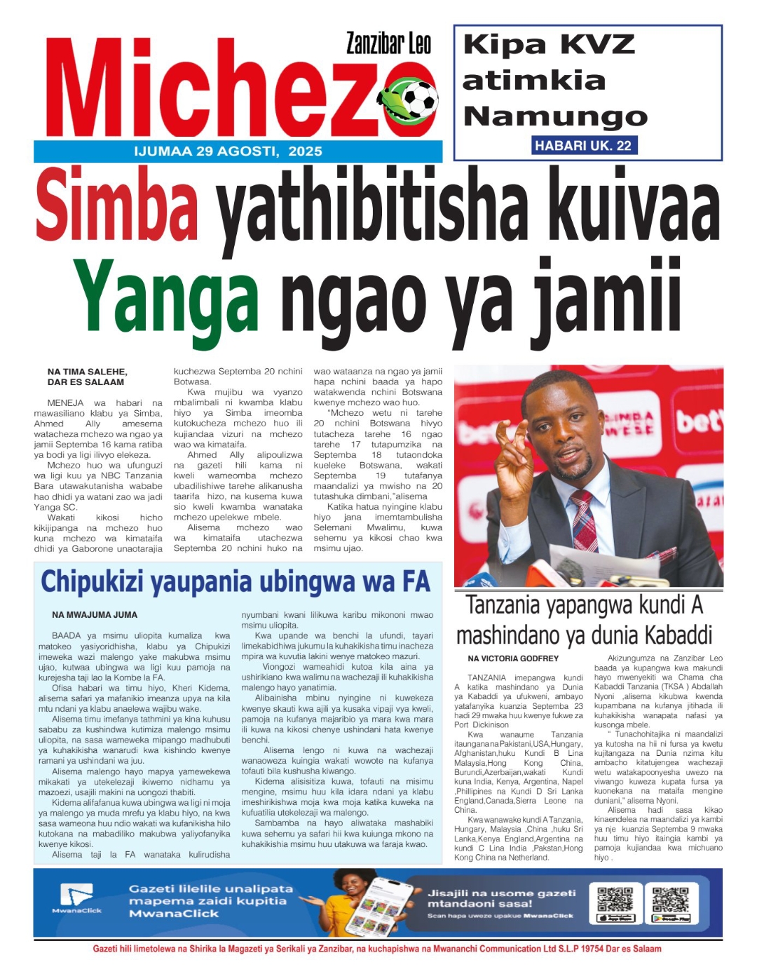 MAGAZETI ya Leo Ijumaa 29 August 2025