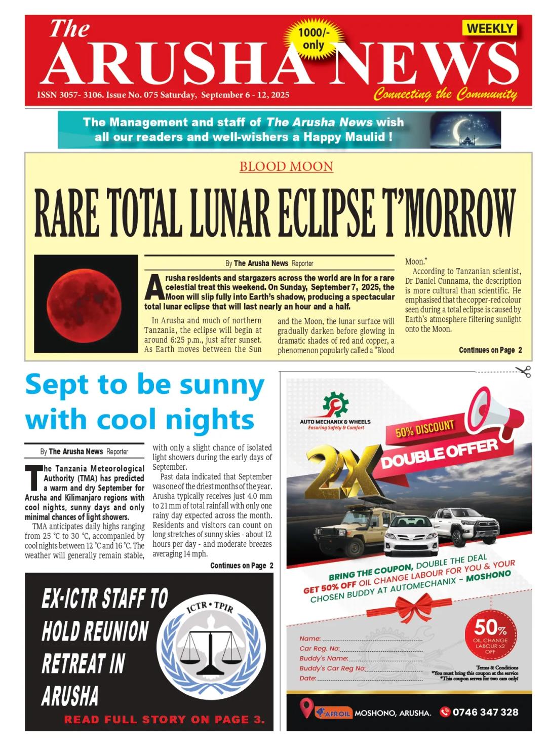 Mamlaka ya Hali ya Hewa Tanzania (TMA) inapenda kutoa taarifa ya tukio la kupatwa kwa Mwezi linalotarajiwa kutokea tarehe 7 Septemba 2025.