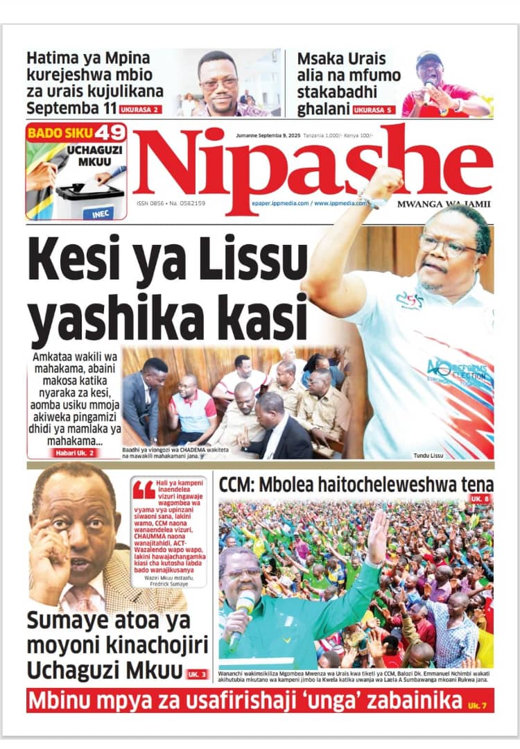 MAGAZETI ya Leo Jumanne tarehe 09 September 2025