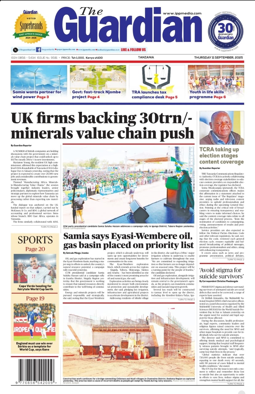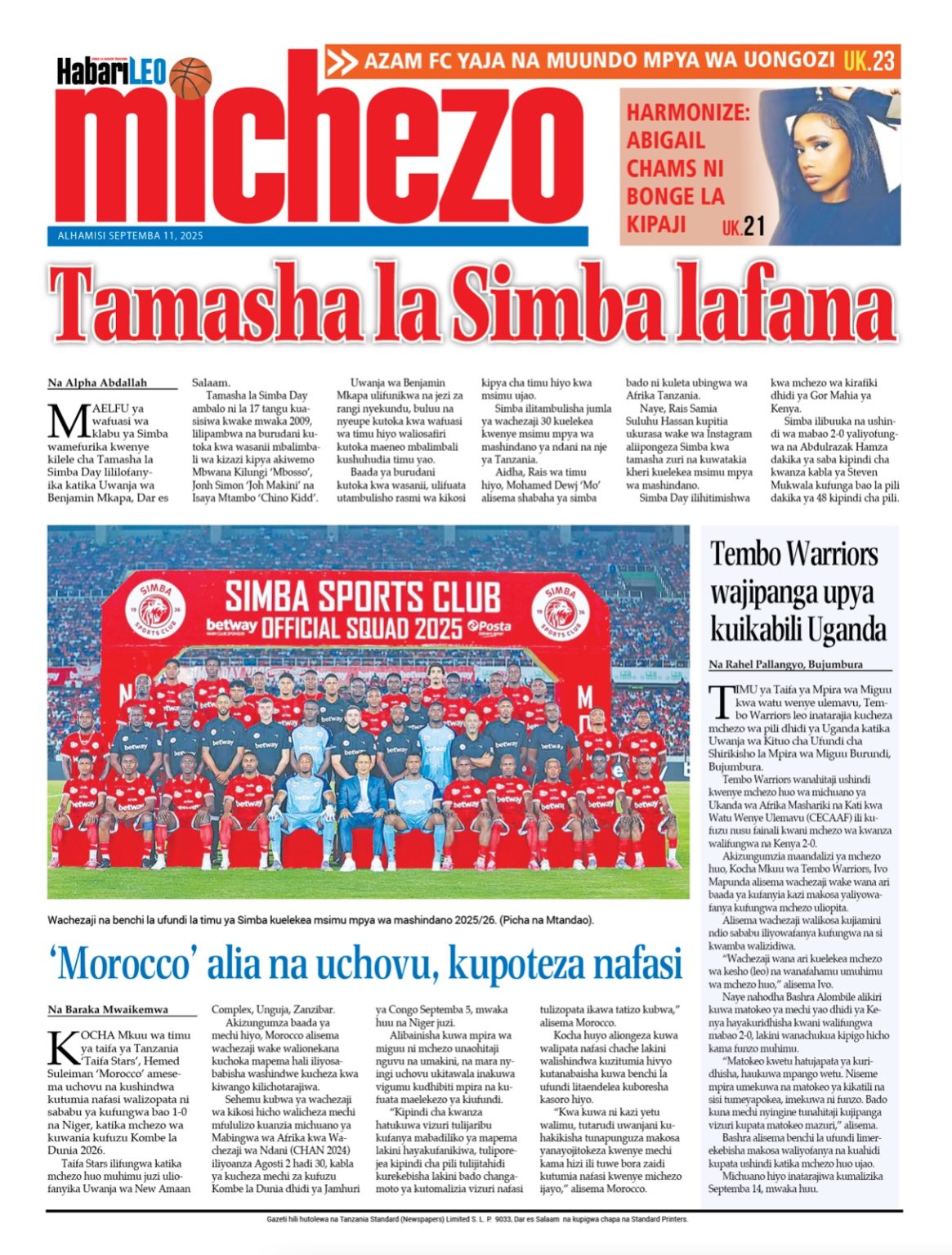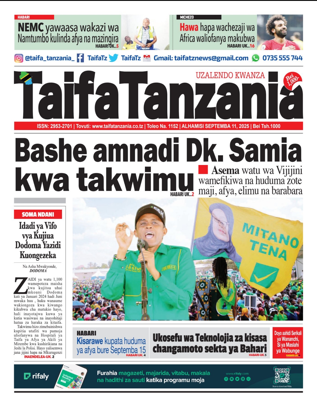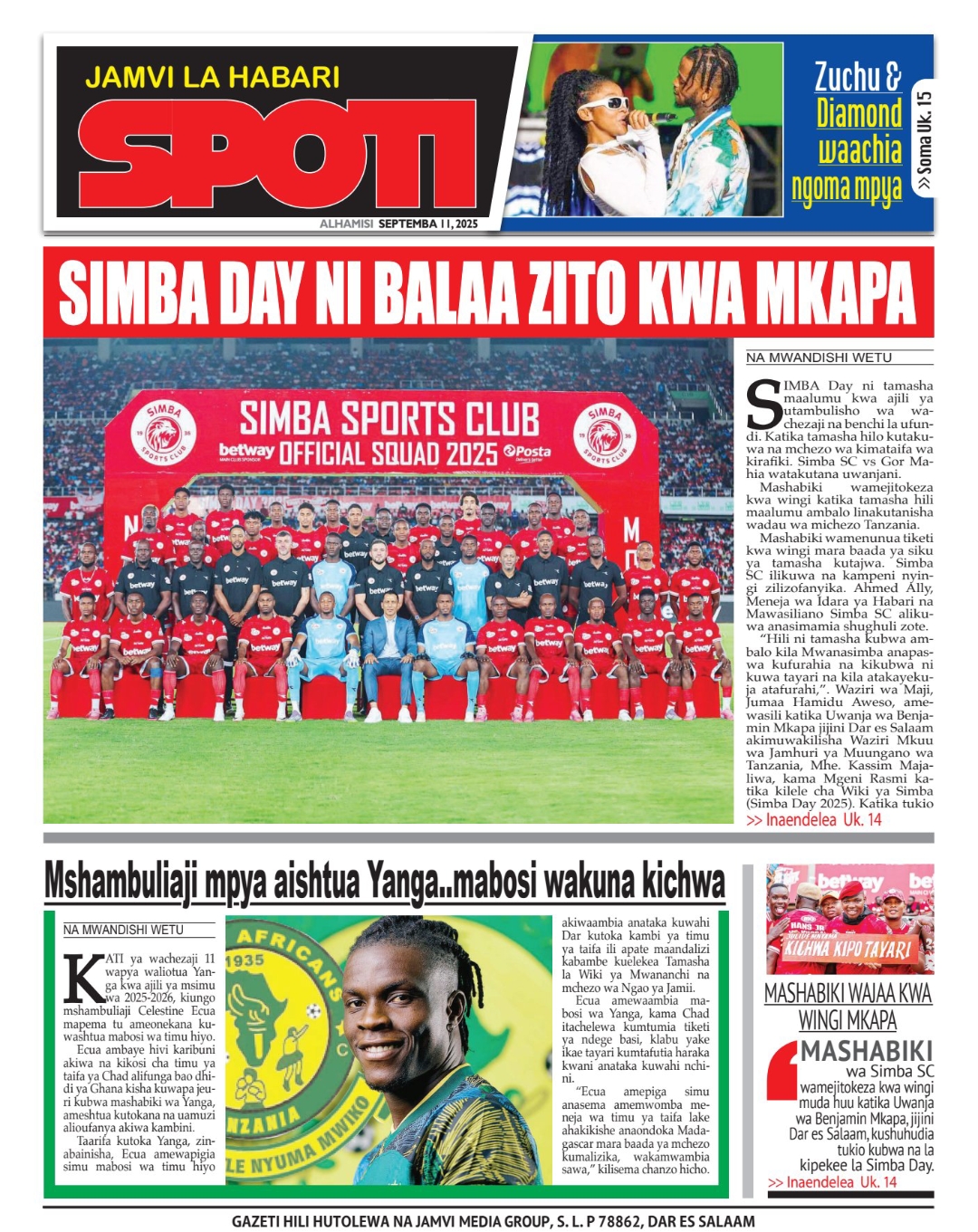 MAGAZETI ya Leo Alhamisi tarehe 11 September 2025