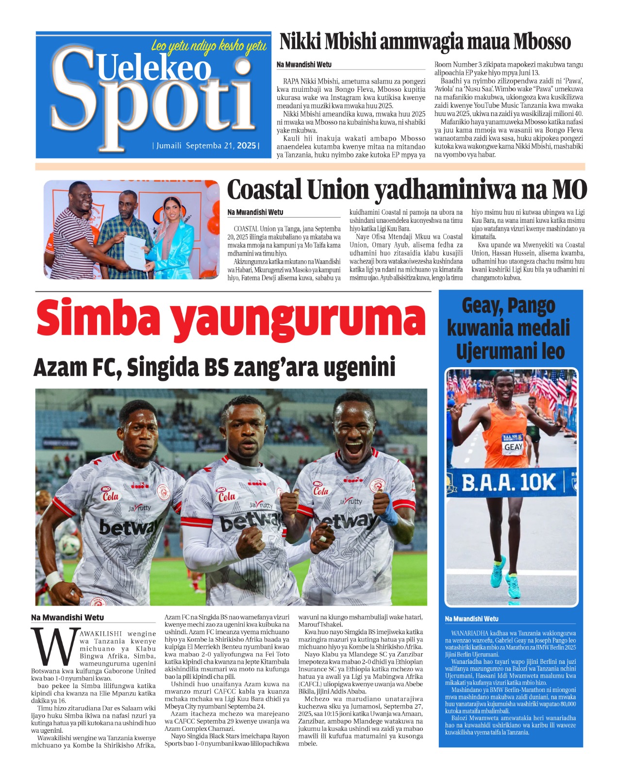 MAGAZETI ya Leo Jumapili 21 September 2025