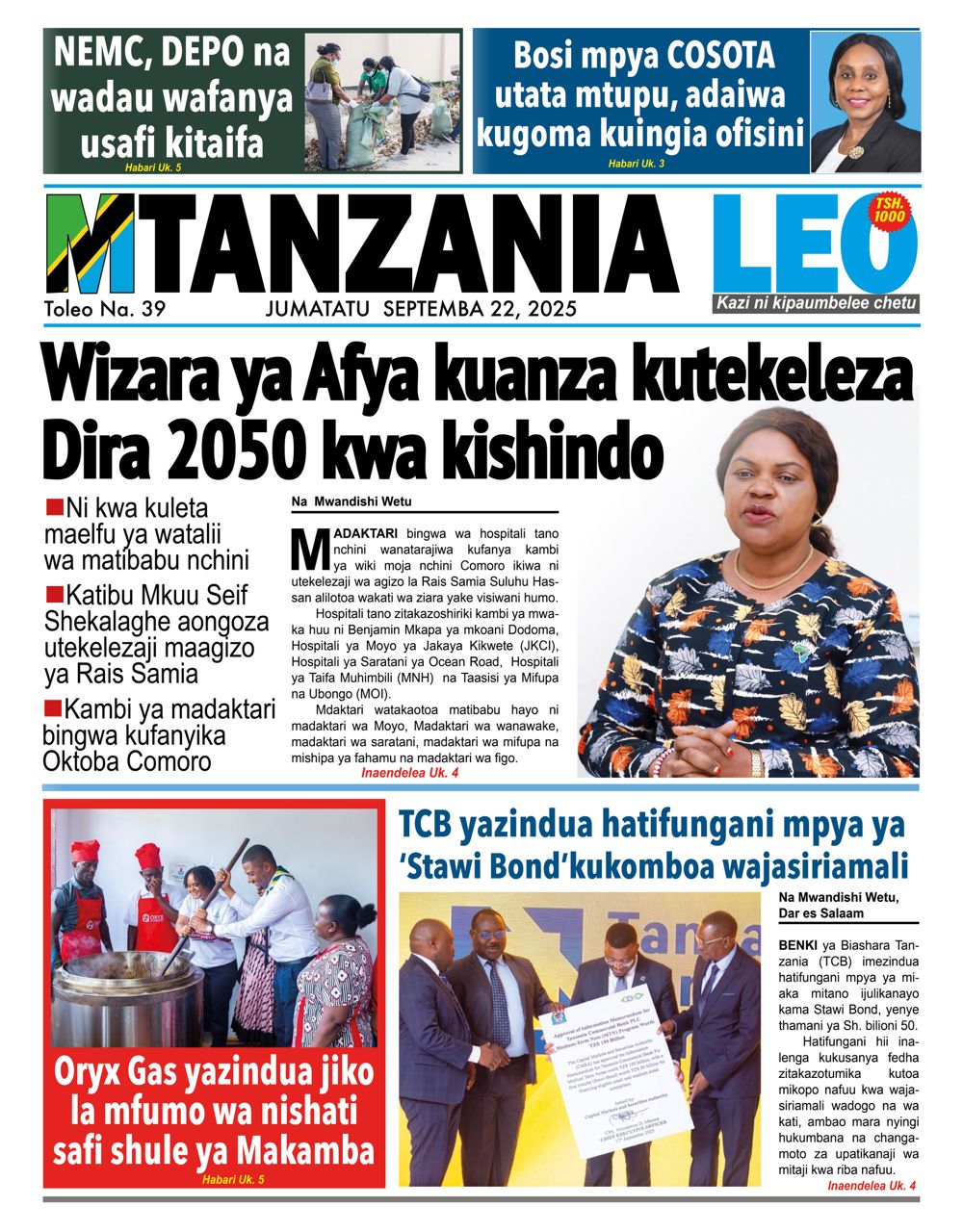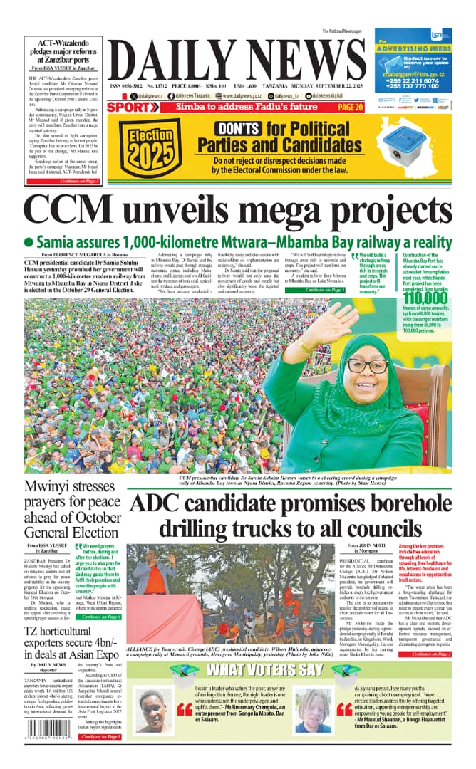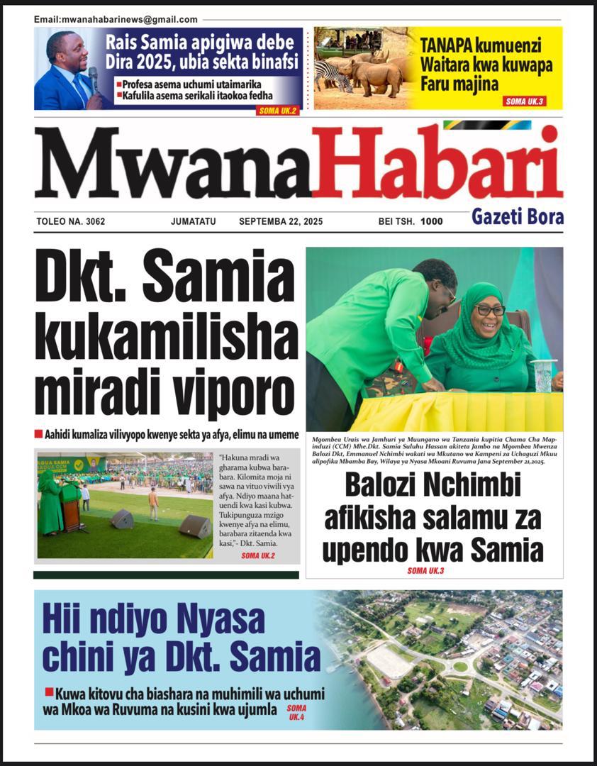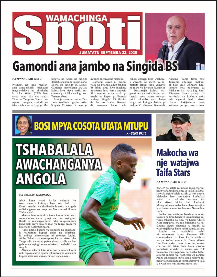 MAGAZETI ya Leo Jumatatu 22 September 2025