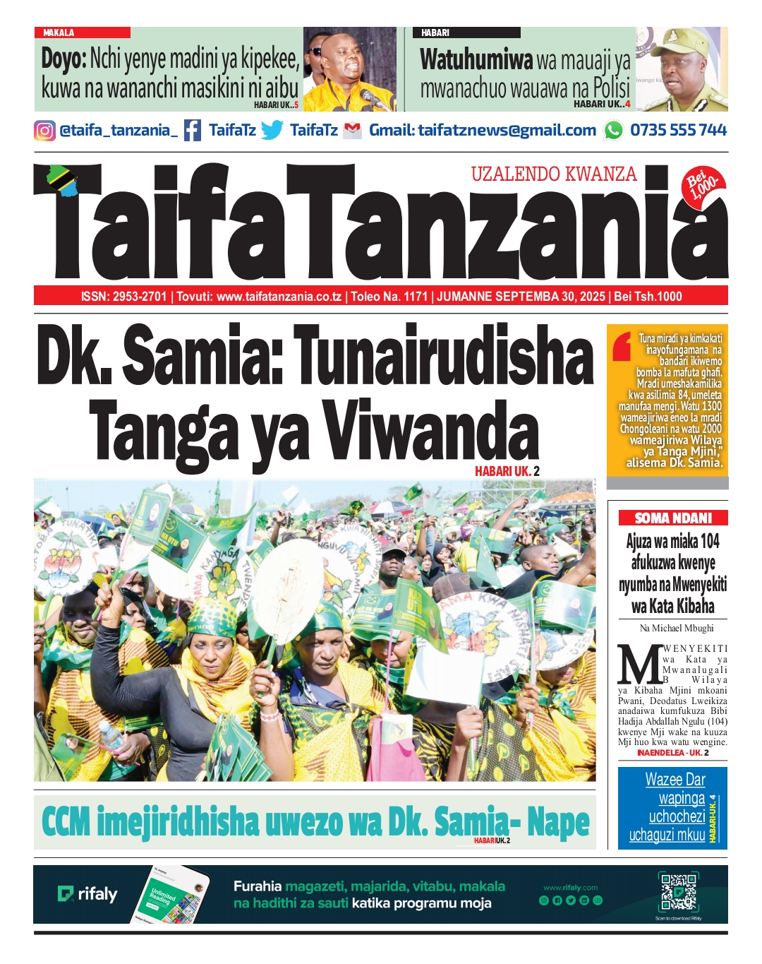 MAGAZETI ya Leo Jumanne 30 September 2025