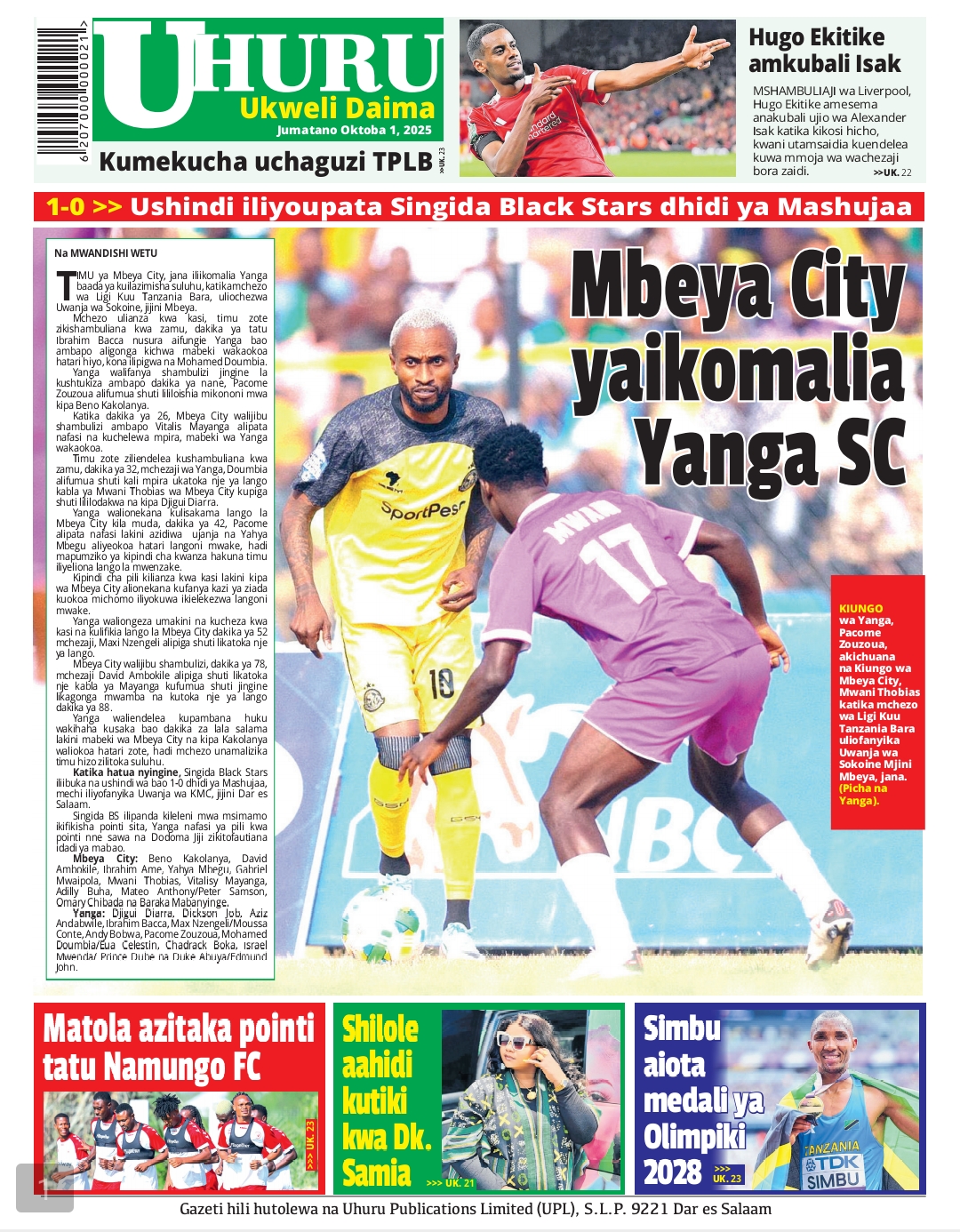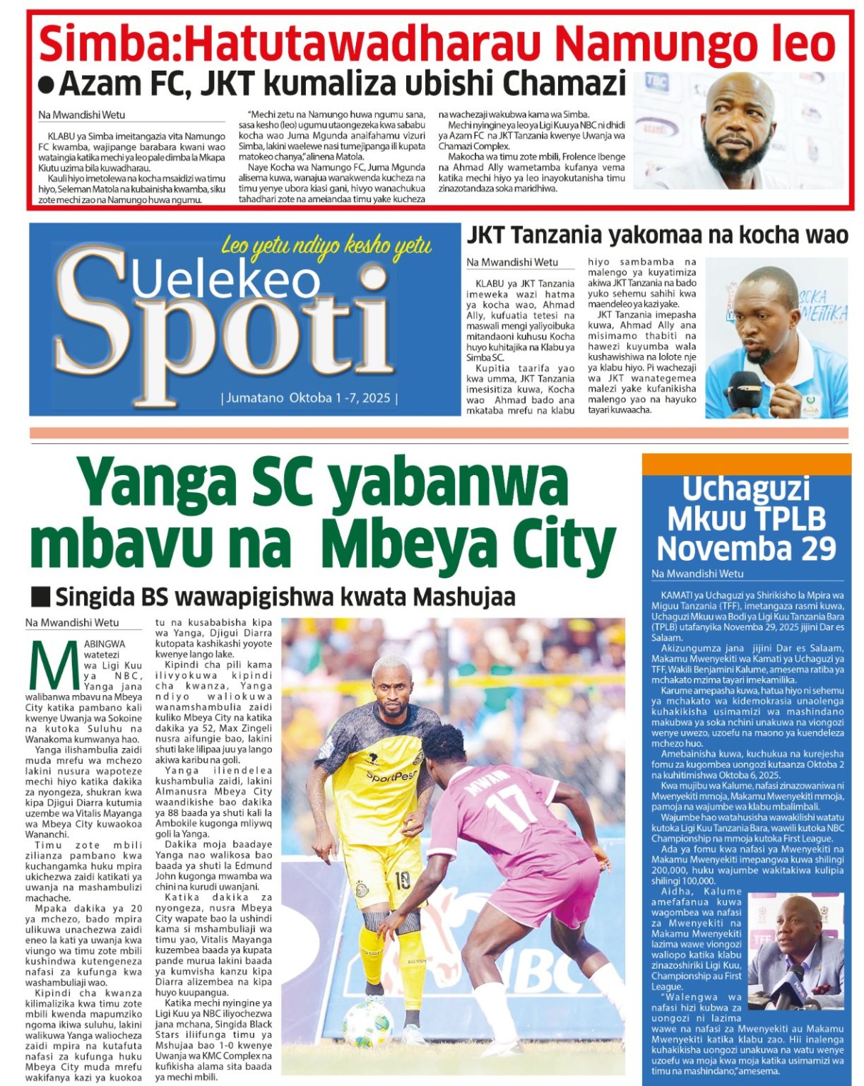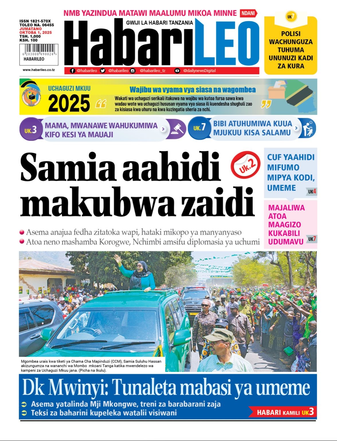 MAGAZETI ya Leo Jumatano 01 October 2025