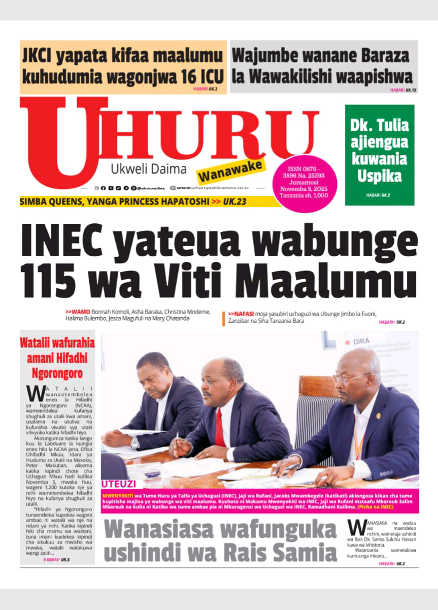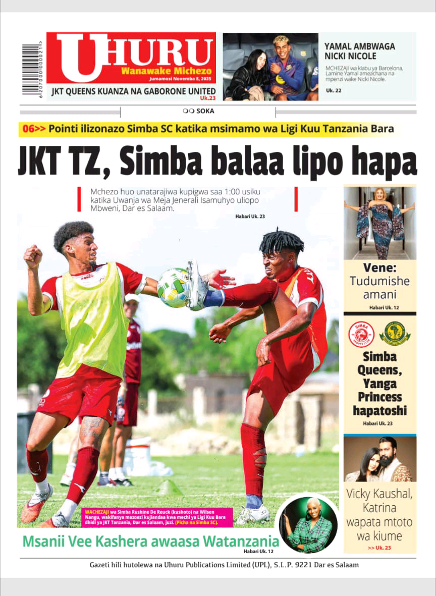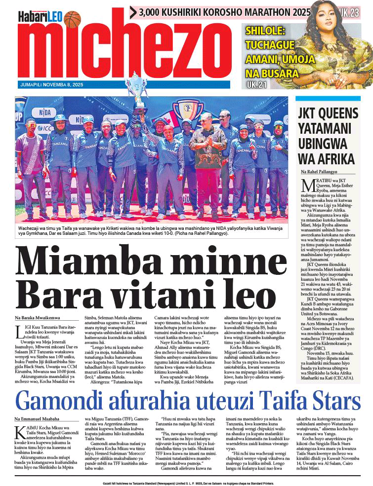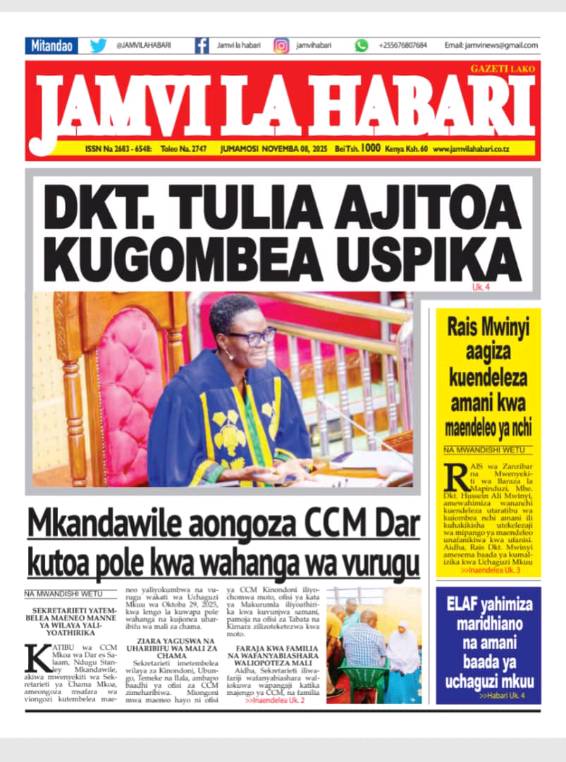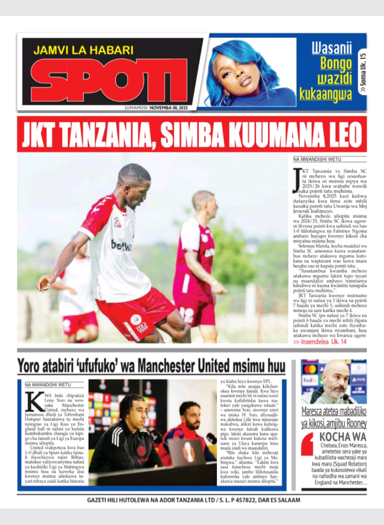 MAGAZETI ya Leo Jumamosi 08 November 2025