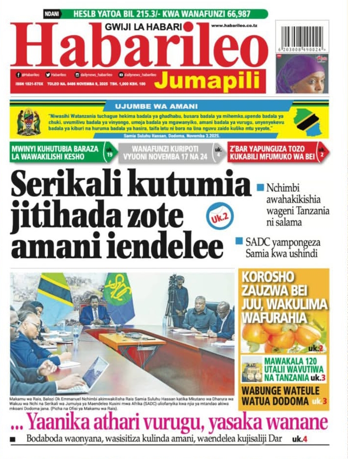 MAGAZETI ya Leo Jumapili 09 November 2025