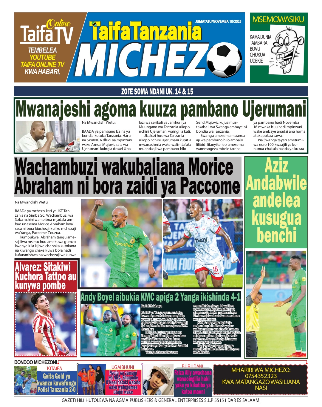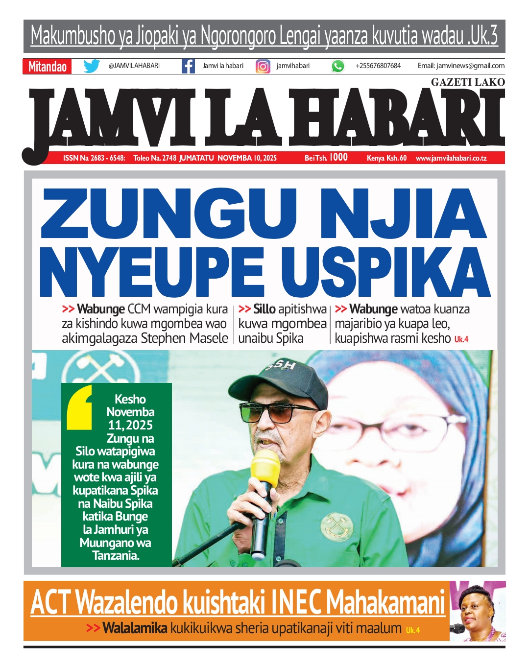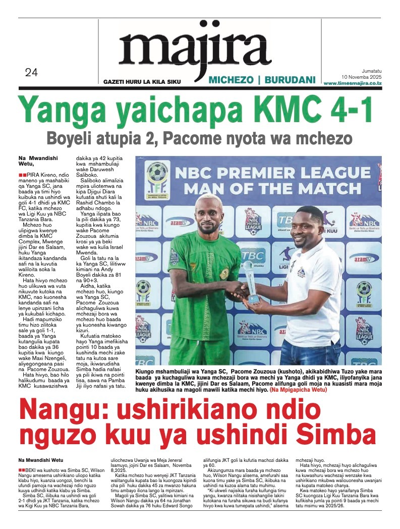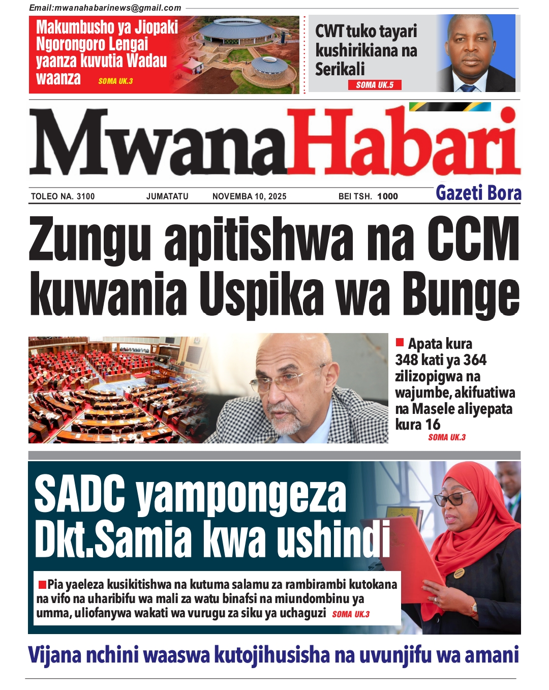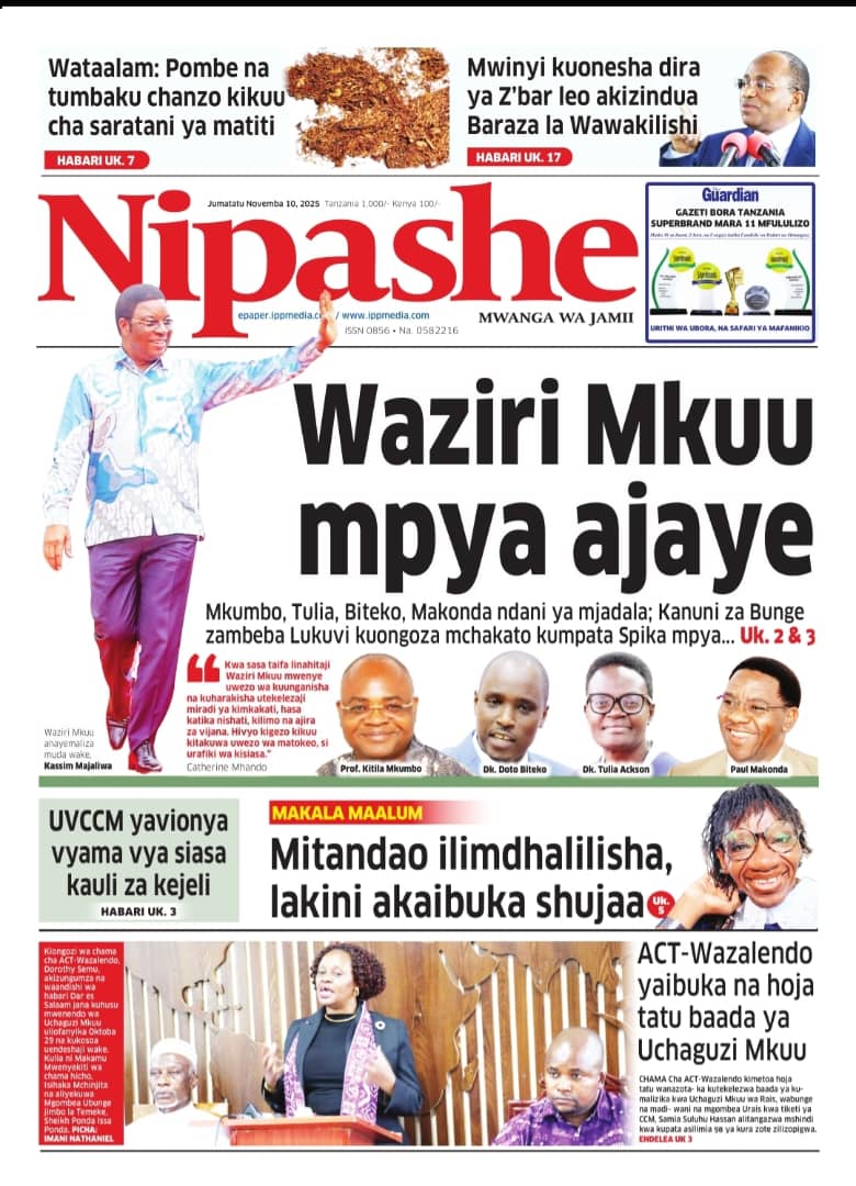MAGAZETI ya Leo Jumatatu 10 November 2025