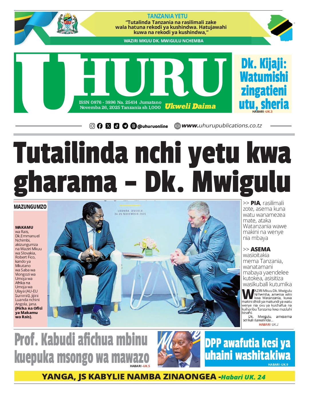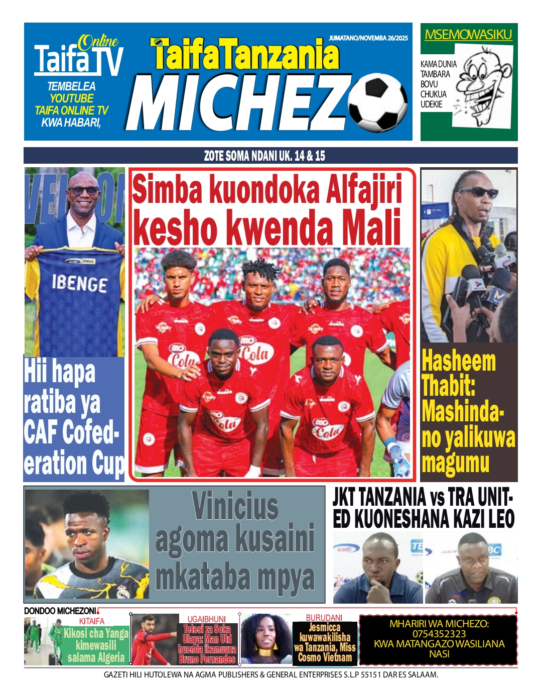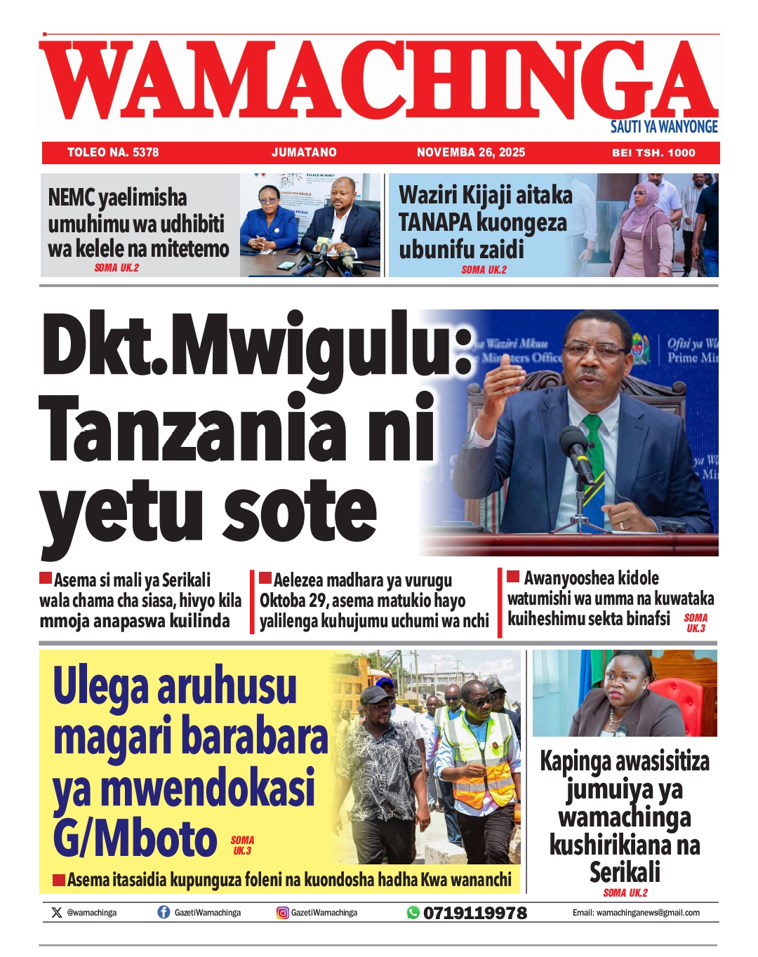MAGAZETI ya Leo Jumatano 26 November 2025