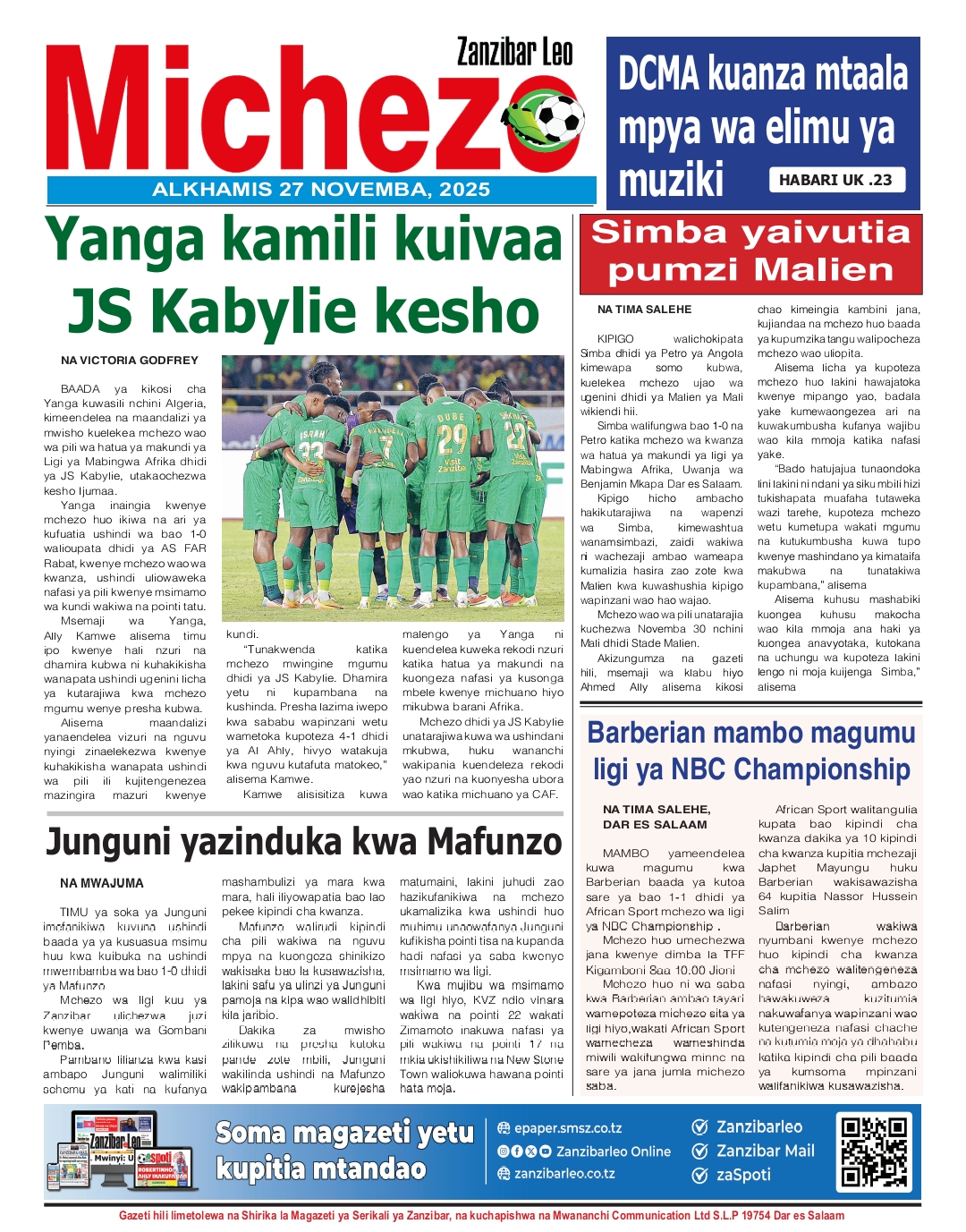 MAGAZETI ya Leo Alhamisi 27 November 2025
